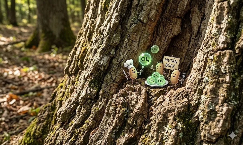 A fák klímahőstörténete eddig egyszerű volt, mint egy iskolai poszter: levél + napfény = CO₂ be, oxigén ki, mindenki boldog. Aztán jön a tudomány, és közli: „oké, de közben a kéregnél is történik valami… és az elég meredek.” Mert a fa nem csak lombkorona. A fa egy komplett lakópark – és a kéreg a főbejárat környéke, ahol mindig a legfurcsább figurák lógnak. Ebben az esetben: billiószám élő mikrobák, akik nem a fotózkodásért vannak ott, hanem azért, mert gázokat esznek. Igen, szó szerint.